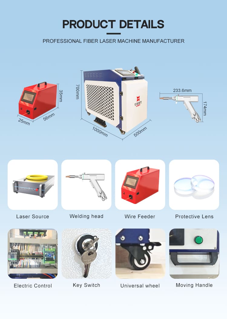 AngHuawei laser 1500W 2000W 3000W 3 sa 1 handheld laser welding machineay isang matatag na pagganapHandheld laser welding machinePagsasama ng welding, pagputol, at paglilinis ng mga pag -andar sa isang compact na disenyo. Huawei laserPagsasama ng welding, pagputol, at paglilinis ng mga pag -andar sa isang compact na disenyo.
