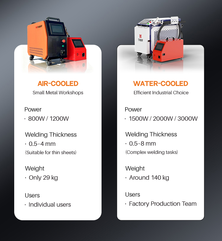AngHUAWEI LASER Grab-and-Go 800W 1200W Air-Cooled Handheld Laser Welding Machine para sa Mabilis na Trabaho sa Workshopay dinisenyo para sa mabilis at mahusay na hinang sa mabilis na mga kapaligiran ng workshop. Nagtatampok ng air-cooled system, ang magaan at portable na itoHandheld Laser Welding Machinetinitiyak ang matatag na pagganap na may kaunting downtime, kahit na sa mahabang paggamit. Tamang-tama para sa maliliit hanggang katamtamang mga proyekto ng welding, gumagawa ito ng mga de-kalidad na weld sa hindi kinakalawang na asero, carbon steel, at aluminyo, na may makinis na tahi at minimal na pagbaluktot ng init. Perpekto para sa mabilis na paggawa ng metal, pagkukumpuni, at mga trabaho sa pagpupulong, angHUAWEI LASERGrab-and-Go 800W 1200W Air-Cooled Handheld Laser Welding Machine para sa Mabilis na Trabaho sa Workshopnag-aalok ng maaasahan, madaling gamitin na pagganap para sa mga propesyonal na kailangang matapos ang trabaho nang mabilis at mahusay.