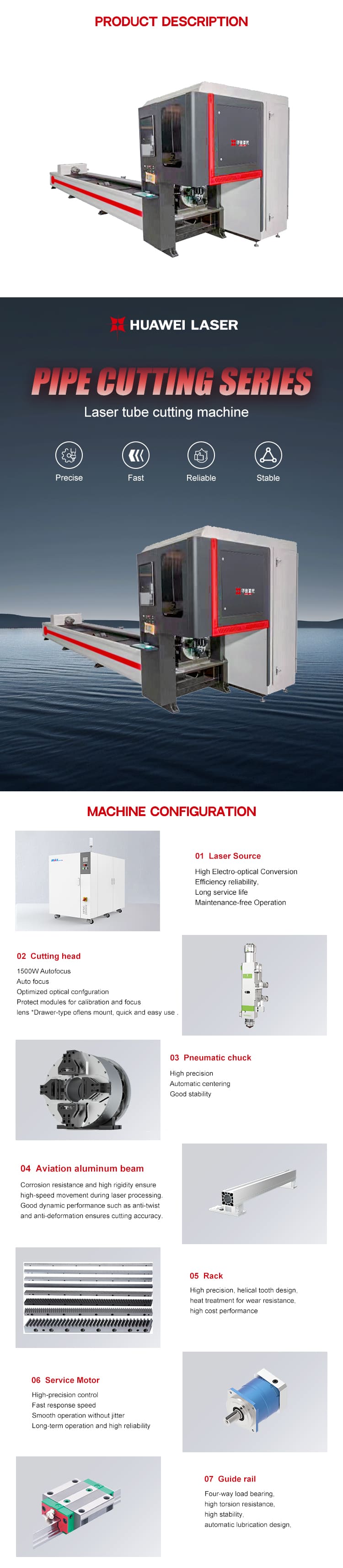 Ang Huawei Laser 6000W High-precision double-chucks tube fiber laser cutting machine ay idinisenyo para sa mahusay at tumpak na pagproseso ng pag-ikot, parisukat, at hindi regular na mga tubo ng metal. Ang dual-chuck system nito ay nagsisiguro ng matatag na pag-clamping, minimal na panginginig ng boses, at tumpak na pag-ikot sa panahon ng pagputol ng high-speed. Nilagyan ng isang mataas na pagganap na mapagkukunan ng laser na mapagkukunan at intelihenteng control software, naghahatid ito ng malinis na pagbawas, makinis na mga gilid, at mahusay na pag-uulit. Ang Huawei Laser Double-Chucks Tube Fiber Laser Cutting Machine ay isang advanced na handheld laser welding machine alternatibong idinisenyo para sa high-efficiency tube at pagproseso ng pipe. Nilagyan ng dalawahang pneumatic chuck, tinitiyak nito ang matatag na clamping, awtomatikong pagsentro, at tumpak na pag -ikot para sa makinis, tumpak na mga pagbawas sa bilog, parisukat, at hindi regular na mga tubo ng metal. Ang mapagkukunan ng high-power fiber laser ay naghahatid ng mabilis na bilis ng pagputol, malinis na mga gilid, at minimal na pagpapapangit ng thermal. Ang inhinyero para sa katha ng metal, paggawa ng kasangkapan sa bahay, paggawa ng kagamitan sa fitness, at mga sangkap ng automotiko, ang sistema ng pagputol ng laser ng Huawei ay nagbibigay ng natitirang kawastuhan, pagiging maaasahan, at pagiging produktibo para sa mga modernong pang -industriya na aplikasyon.Ang makina na ito ay sumusuporta sa awtomatikong paglo -load, na -optimize na mga landas sa pagputol, at mabilis na materyal na paglipat, paggawa ng perpektong para sa paggawa ng kasangkapan, kagamitan sa fitness, mga tubo ng konstruksyon, at pasadyang metal na katha. Nagbibigay ito ng malakas na pagiging maaasahan at pare-pareho ang pagiging produktibo para sa mga aplikasyon ng pagproseso ng tubo.